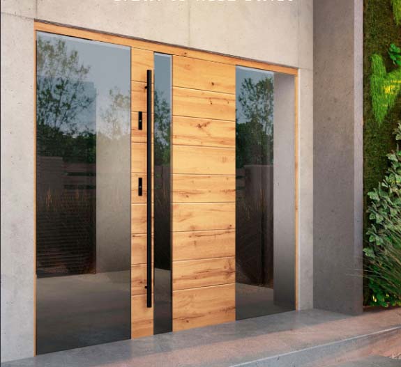 Drzwi z kolekcji Simple Elegance mogą zostać wykonane z przeziernym pakietem szybowym. Jest to idealne rozwiązanie dla osób ceniących sobie tradycyjne przeszklenia w drzwiach wejściowych. Przezierność pakietu szybowego zapewnia dostęp światła do wiatrołapu lub korytarza oraz umożliwia widoczność na zewnątrz.